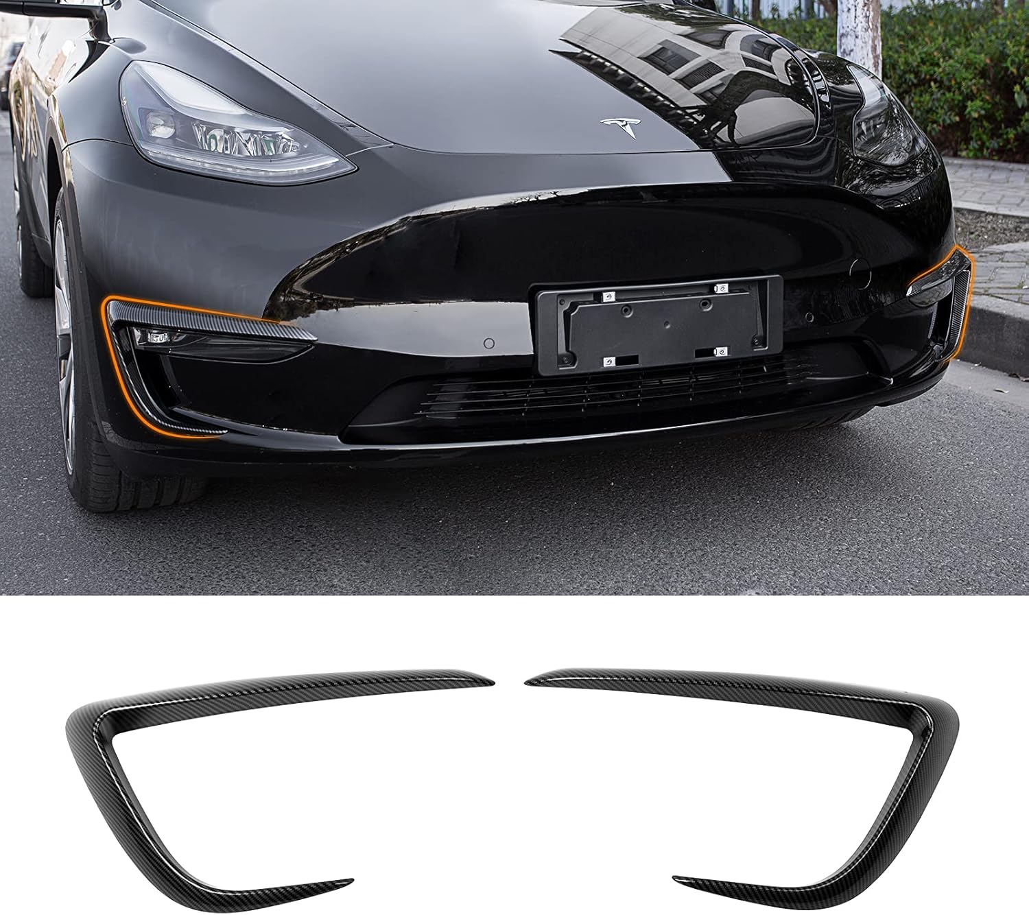 Amazon Com Fit Tesla Model Y Fog Light Trim Spoiler Front Fog Light Cover Eyebrow Covers For Tesla Model Y Accessories 2020 2021 2022 Glossy Carbon Fiber Pattern Automotive